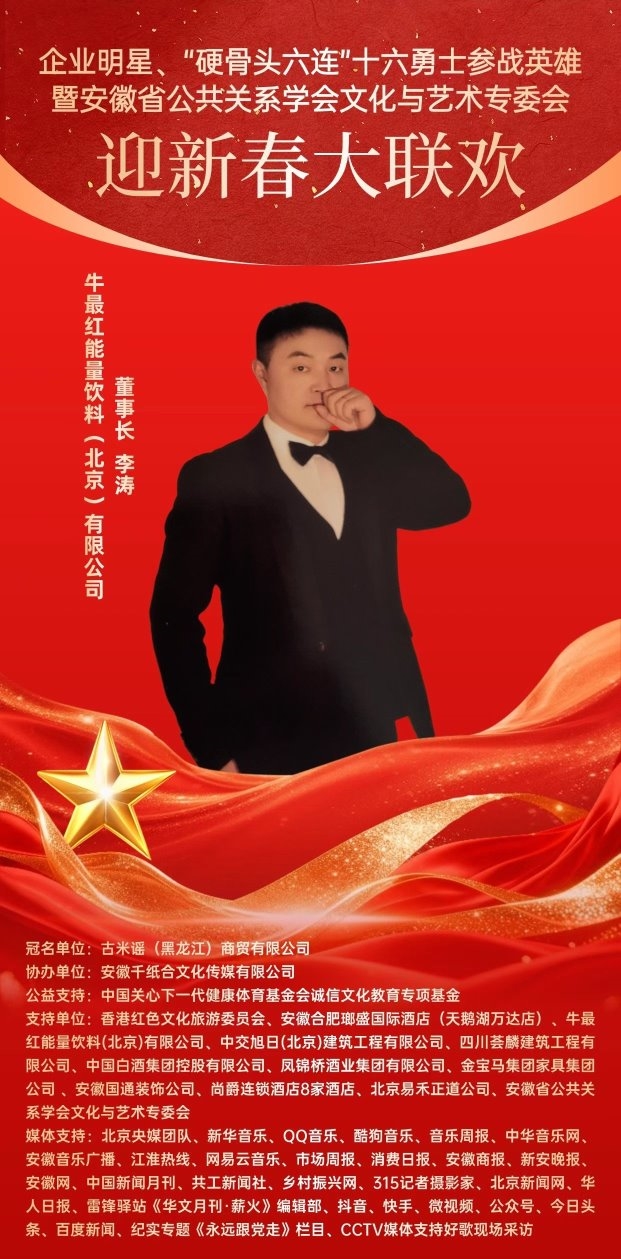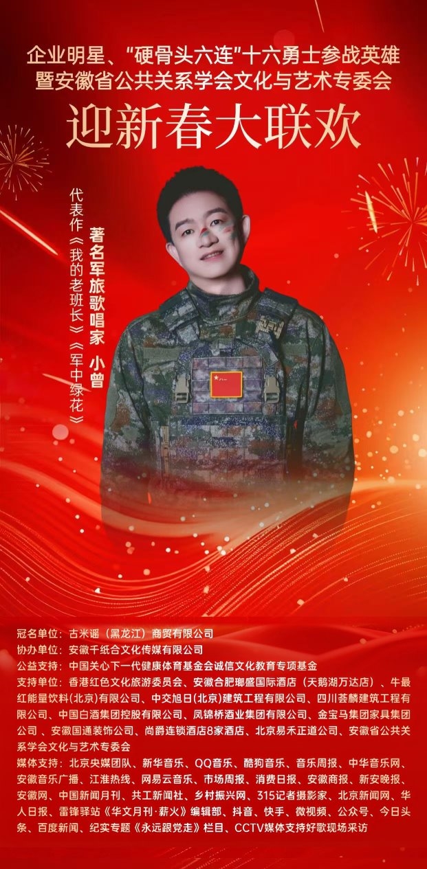 此次《企业明星•“硬骨头六连”十六勇士参战英雄•安徽省公共关系学会文化艺术专委会•迎新春大联欢》,将不仅是一场辞旧迎新的盛会,更是一次精神的相聚、文化的共鸣。相信在各界代表的共同参与下,活动将成为传承英雄精神、弘扬红色优秀文化的重要平台,记录时代精神,传递文化力量,让红色文化、传统文脉在新的一年里持续燎原。