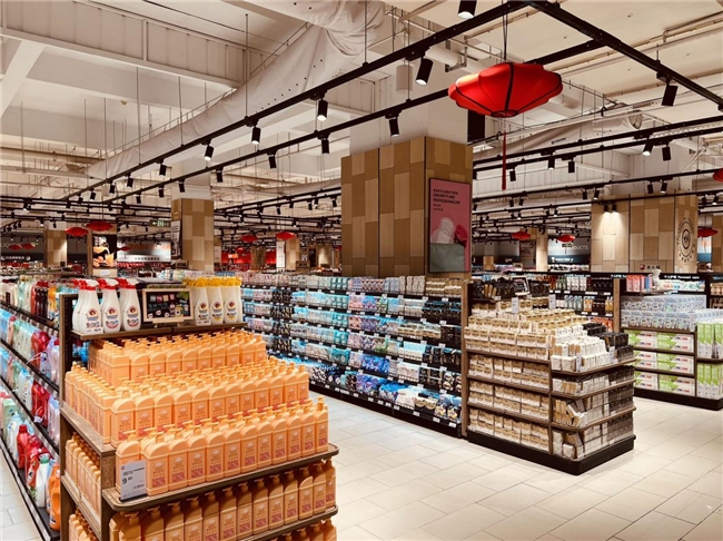门店购物环境同步升级,取消了强制动线,大幅拓宽购物通道。货架设置更为人性化,中岛货架高度由原来的2-2.4米统一调整为1.6米,层数也从8-9层精简至5-6层,营造出开阔通透、轻松自由的漫步式购物空间。