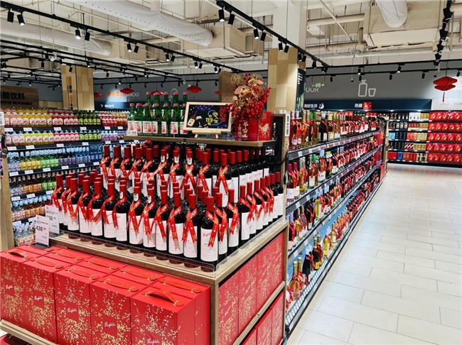 门店特设“胖东来自有品牌专区”与“永辉自有品牌专区”,集中陈列DL精酿黑啤酒、DL果汁,以及永辉零反式脂肪酸古法花生油、黑松露火腿苏打饼干等严选商品。酒水区亮点纷呈,五粮液第八代白酒等名优酒饮为春节礼赠提供了高品质选择。