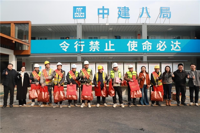 颁奖仪式结束后,项目部管理人员向一线建设者们发放新春祝福礼包,并领取由书法老师为一线建设者们书写的新春对联,让工友们带着中建八局马桥别墅项目的暖意,完成年前施工任务,平安回家过年。