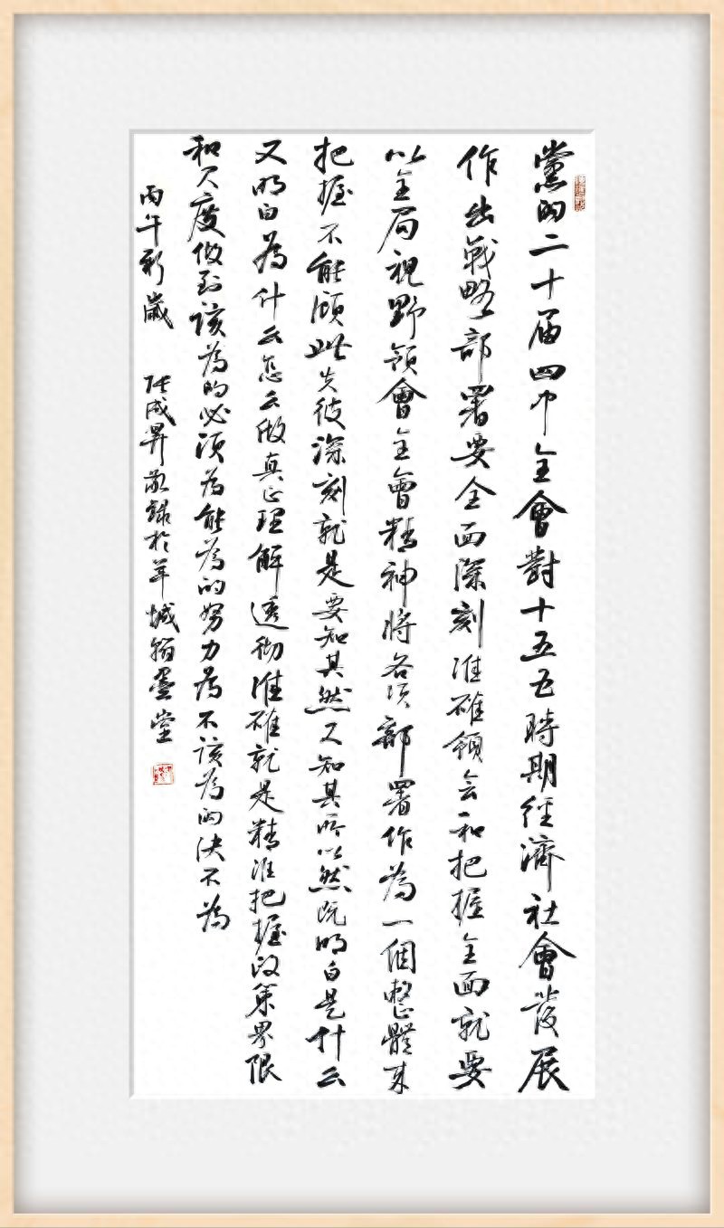 本次展出的作品均由中国书法家协会会员、总站退休干部张成生创作。作品紧扣时代主题,聚焦政治引领与价值传递,涵盖党的创新理论金句、新年贺词鼓舞人心的话语,以及对“团结奋进、守正创新”黄埔站精神的凝练诠释。笔墨之间,充分展现了党的创新理论的磅礴力量和移民管理警察的忠诚本色。