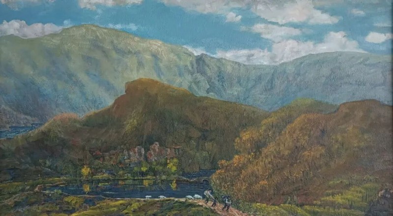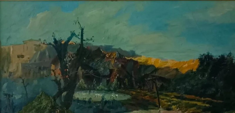 画家陈朝瑄生于重庆市潼南区柏梓镇,那是一座藏着岁月余温的古老小镇。 一次偶然的机缘,我与友人同访朝暄故乡居所,入门便见一幅《故乡秋水》油画悬于壁上,潼南的灵秀风光铺展眼前。画中那似曾相识的景致,轻易便唤起了我心底的乡愁——澄澈天光、漫卷白云,远山含黛、氤氲如雾,金黄稻田铺陈旷野,一方荷塘静卧其间,清幽自守。这让我想起,我的家乡也有这样一汪水草丰茂的荷塘,晴和之日,我总携一卷书独赴塘边,在草木清香中沉潜文字世界。画中,石上静坐的少女眉眼间的安然、惬意与淡淡孤寂,恰如我青春时的剪影。