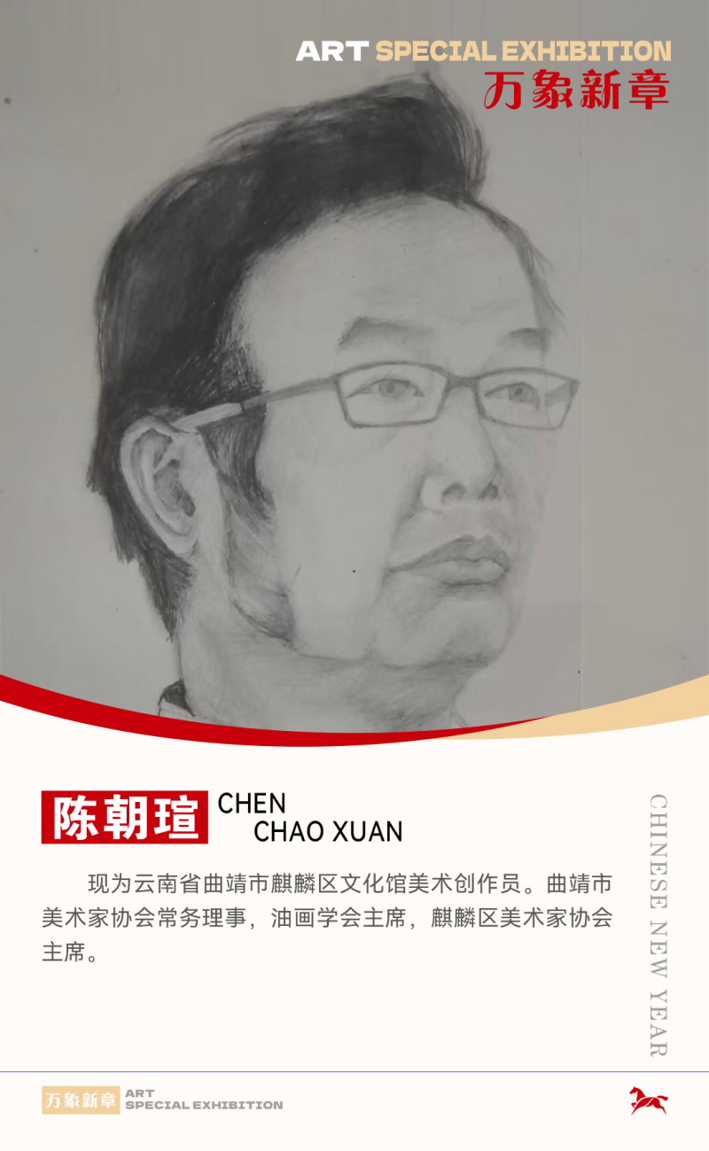 陈朝瑄,笔名朝暄,号凌云子。重庆市潼南人,1949年端阳节正午出生(6⽉5日)。从小随处涂鸦,终身爱好绘画,一生创作丰硕,多次举办“朝暄乡情画展”,引起轰动,收到各阶层人士和多个媒体广泛好评。为各地慈善机构和抗震救灾活动捐赠大量作品,被中外友人广泛收藏。在家乡建有“朝暄画苑”。1989年于中央美术学院油画系进修结业。现为云南省曲靖市麒麟区文化馆美术创作员。曲靖市美术家协会常务理事,油画学会主席,麒麟区美术家协会主席。自1981年从事美术创作以来,在国内外报刊发表油画、版画、漫画。