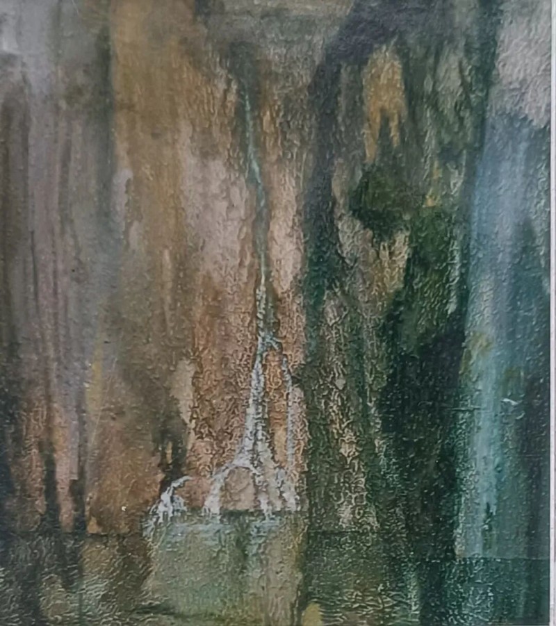 画者刻意压低色彩的明度,提升色彩的浓度,以朦胧笔触牵引观者步入回溯的情境。这般表达,即留足了赏析的空间,亦唤起了觀者的深层思考,让“觀”与“思”相融相生,共同构成对作品艺术内核的感知。我對《故鄉秋水》的親近,源于畫作催生的思鄉之情。年少時我離鄉赴西南戍邊,如今定居曲靖,故鄉的那方荷塘早已變了模樣,却在我心中定格爲一幅永不褪色的畫卷, 成爲精神永恒的歸處。