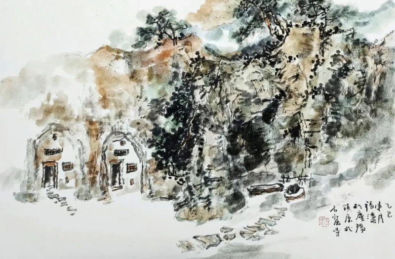 《庆阳北石窟寺写生之一》46x68cm 张涛 2025年创作
