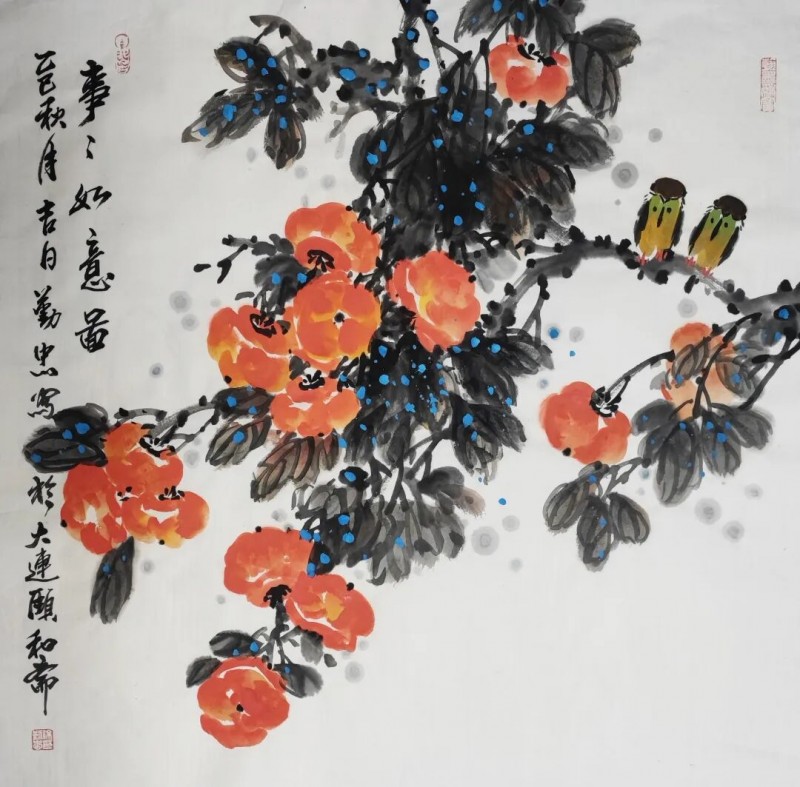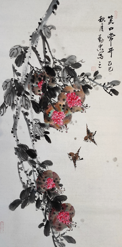 【和气满堂】国画写意花鸟作品,规格138cmx68cm四尺整张