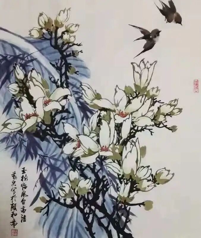 【花开富贵】国画写意花鸟作品,规格50cmx100cm三尺整张