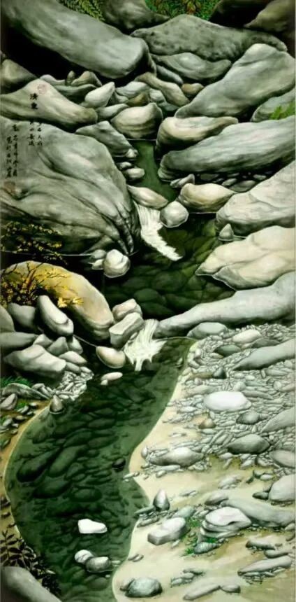 【清泉】国画工笔石水画作品,规格68cmx138cm四尺整张