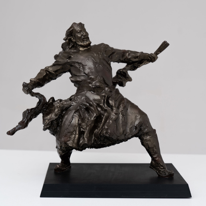 作品以蒙古族的筷子舞为创作蓝本,通过瞬间的动态捕捉,将这种具有强烈民族特色的舞蹈永久性地定格。放松而奔放的动态形象,传递出草原文化的独特魅力和深远内涵。雕塑中的舞者身着传统服饰,以其粗犷的面孔和挥舞的筷子,展现出蒙古族人民既豪放又细腻的性格特点。他的姿态强劲有力,仿佛正随着悠扬的马头琴声和草原之风翩翩起舞,充满了自由和激情的气息。
