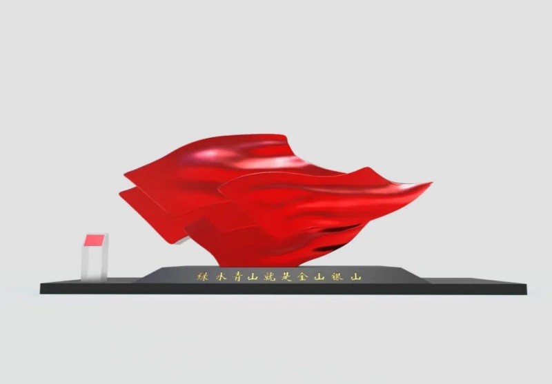 作品以其飘扬的红旗形态,代表中国共产党的光荣历史和革命精神,象征对未来发展的坚定信心和不懈追求,体现党在新时代的领导力和先进性,也传递着启迪思想、引领变革的强烈信号。