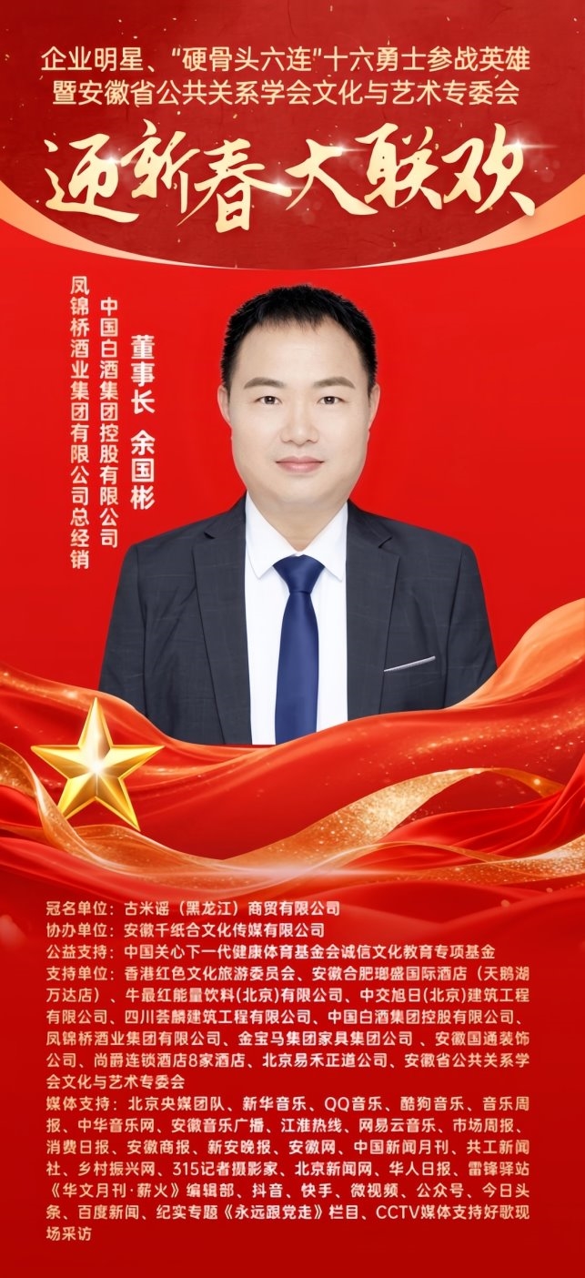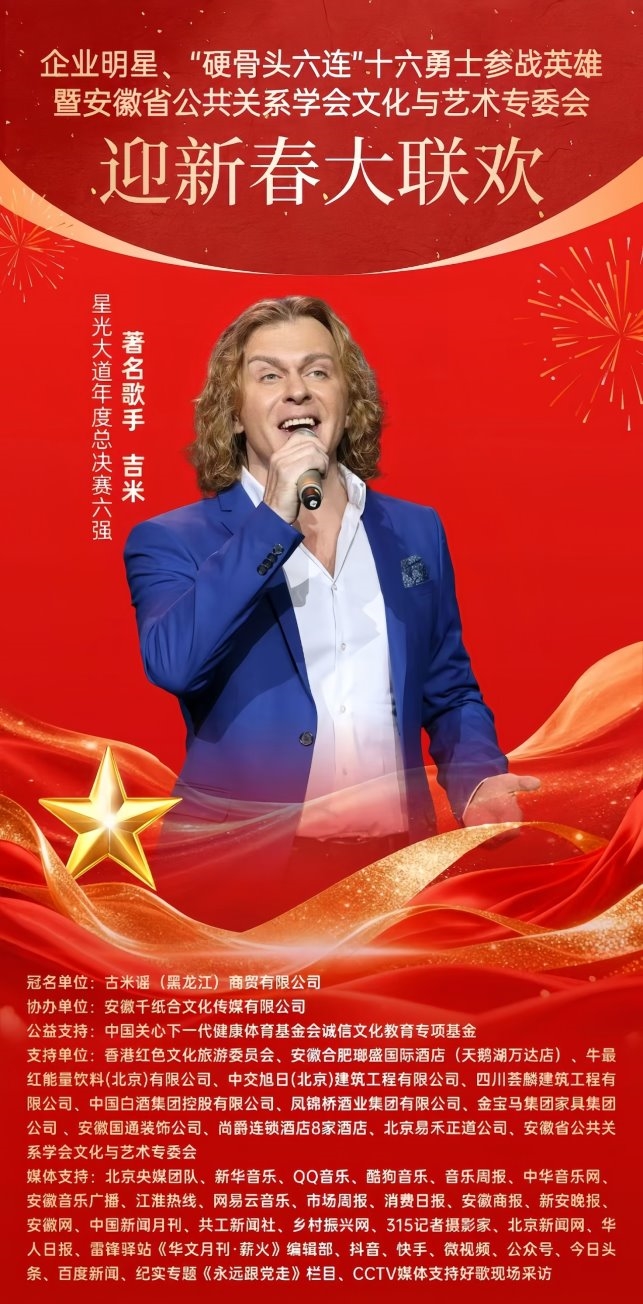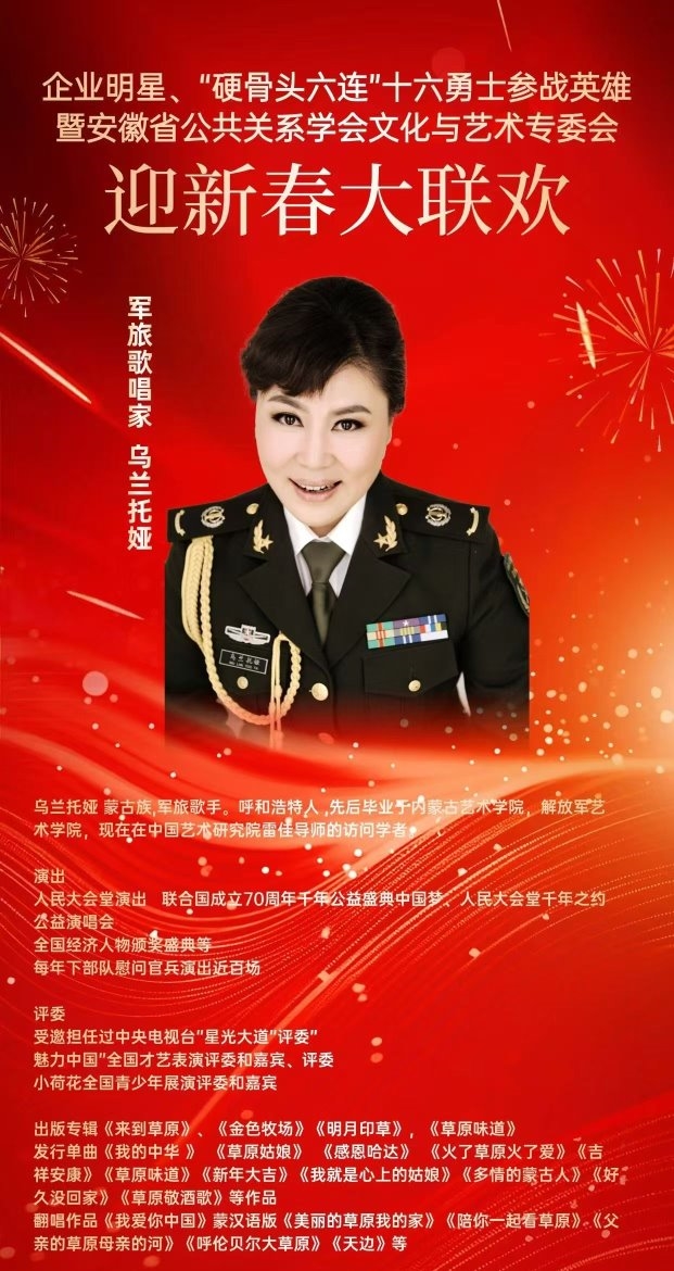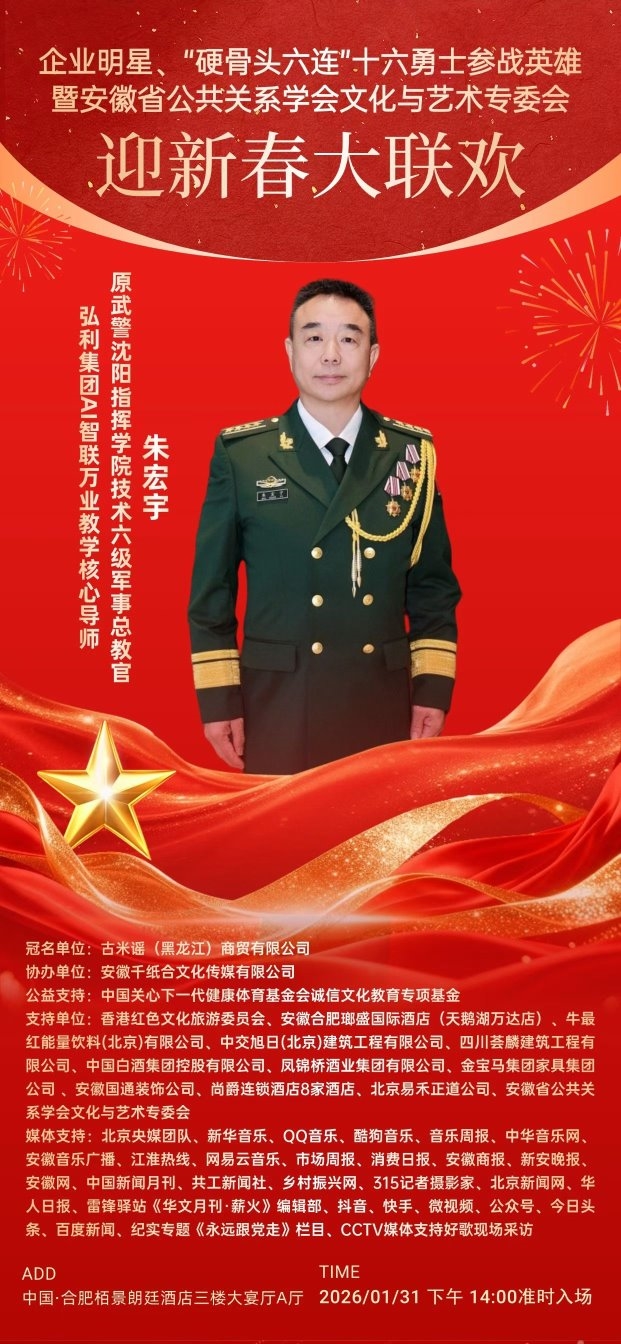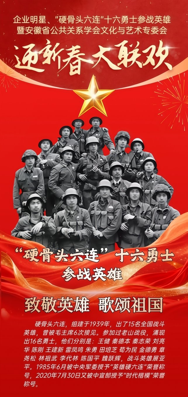 2026丙午马年新春将至,暖意渐浓。近日,备受关注的《企业明星•“硬骨头六连”十六勇士参战英雄•安徽省公共关系学会文化艺术专委会•迎新春大联欢》活动进入筹备倒计时,将在2026年1月31日于中国安徽合肥举行。