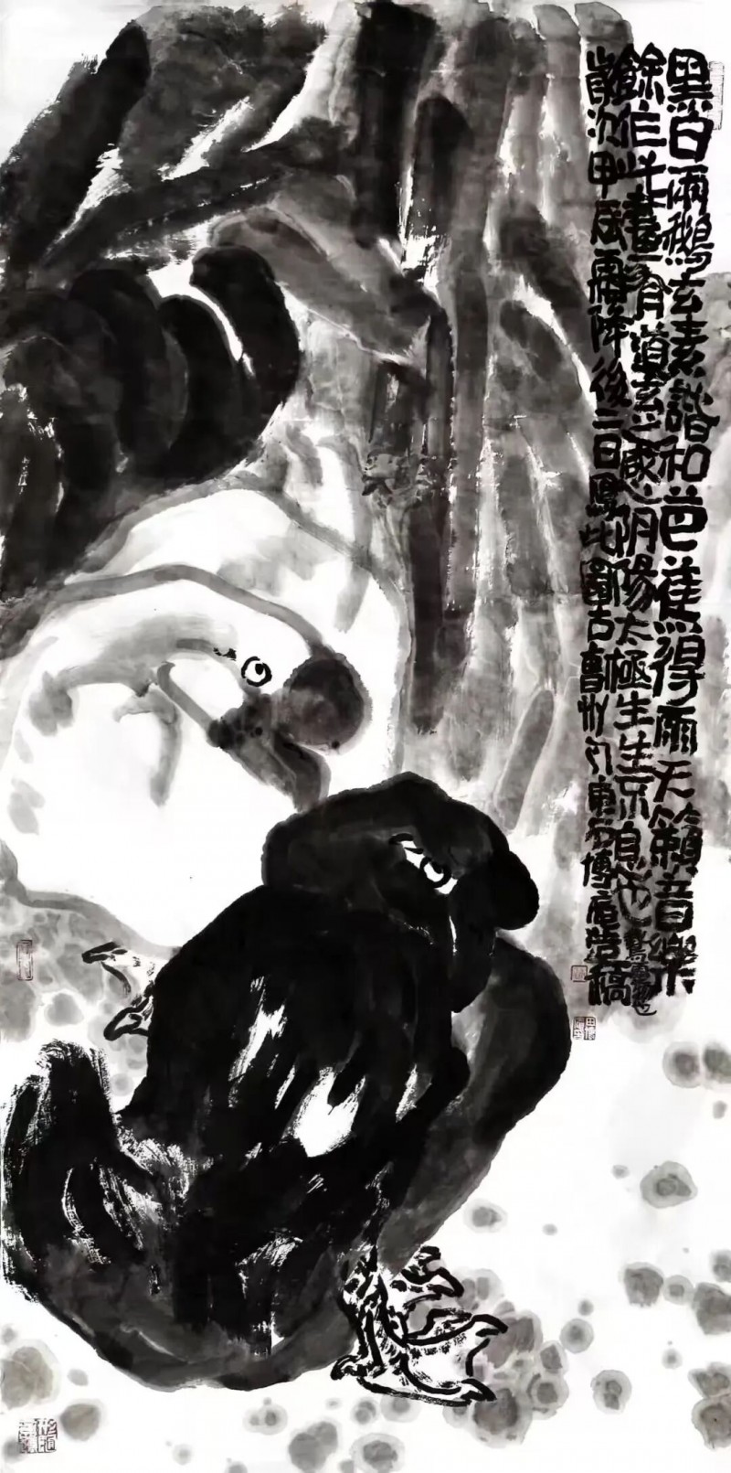 融民间意趣,其质生动:对《好大王碑》和民间书风等。天真烂漫、生辣奇崛意趣的融合,则有效规避了笔墨可能产生的板滞与程式化,为浑厚的画面注入鲜活的生命气息与古朴趣味。