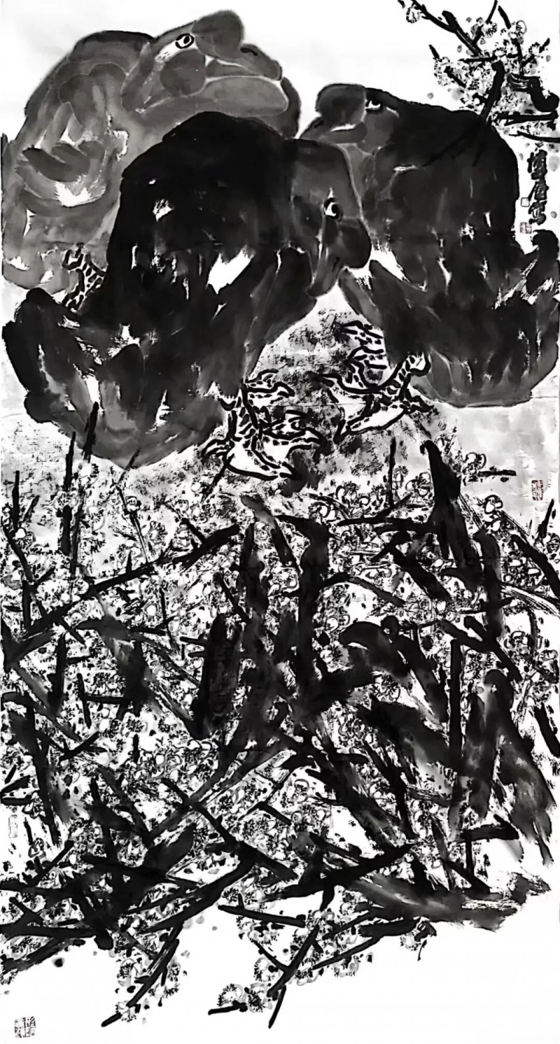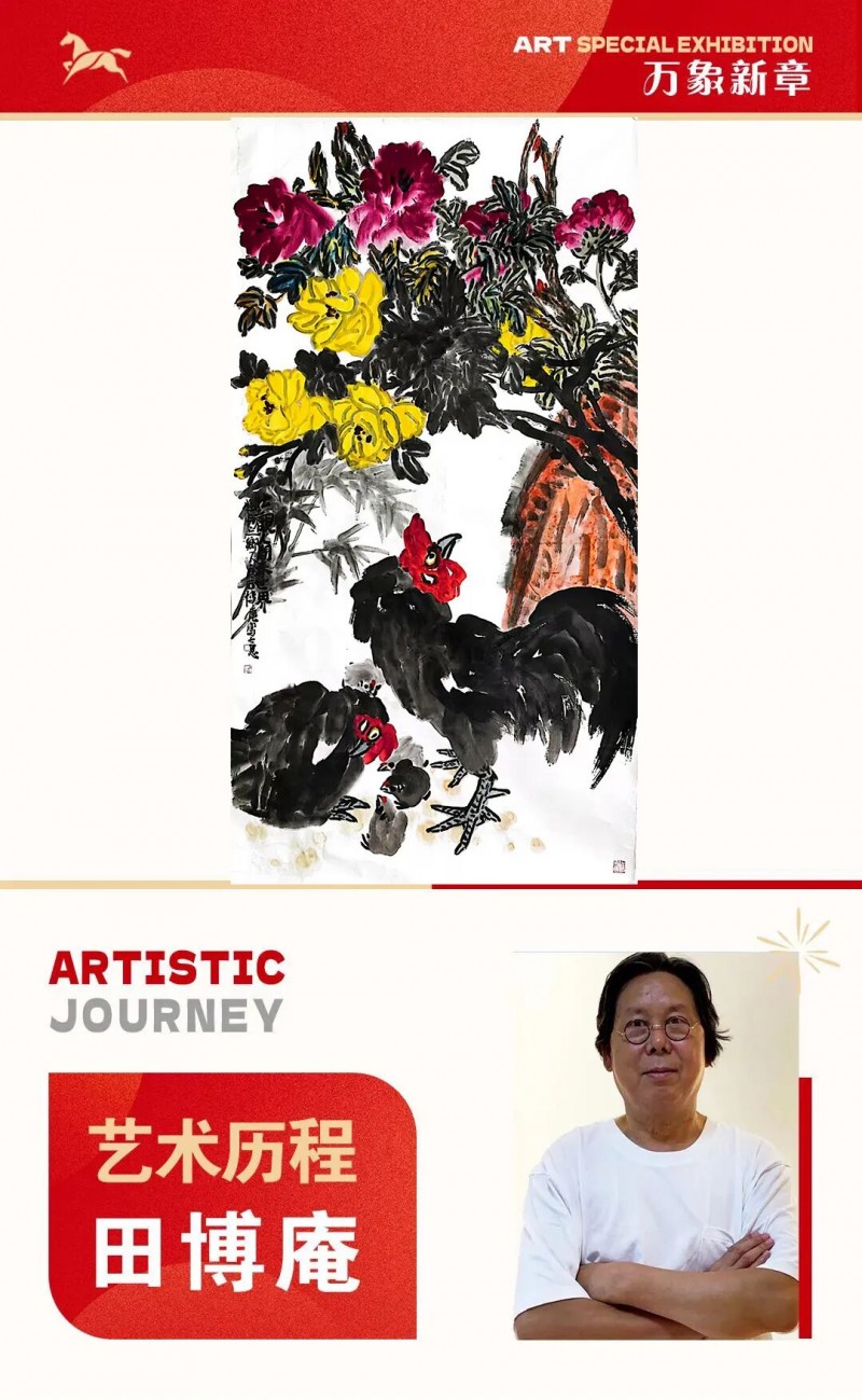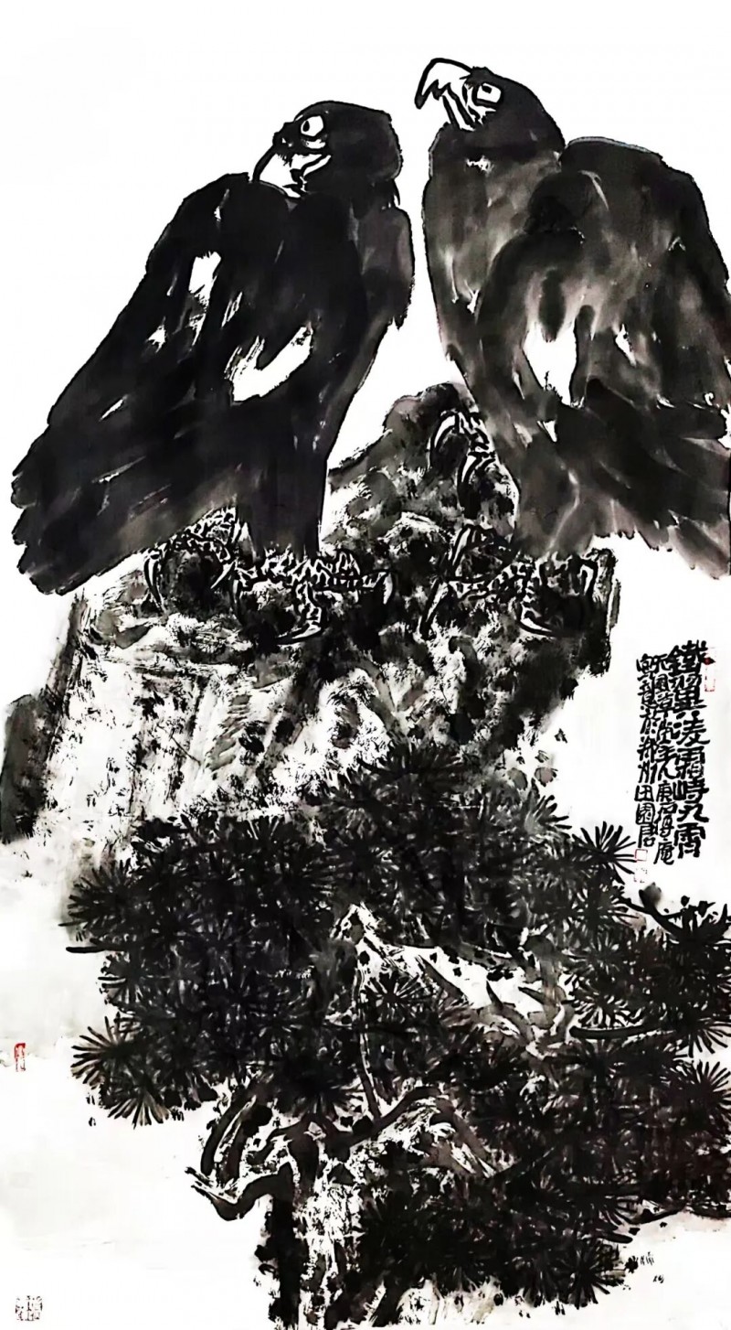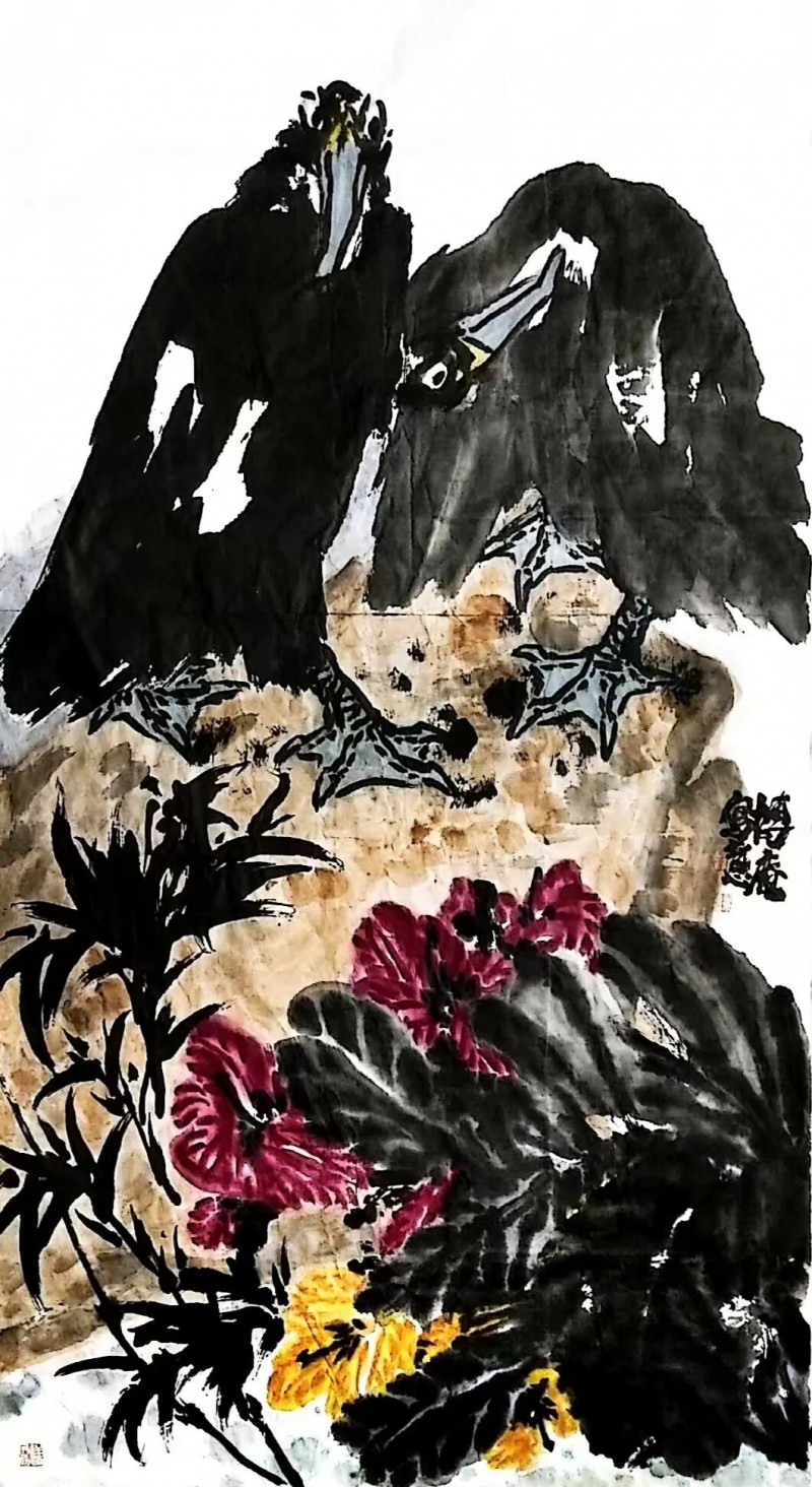 在当代中国大写意花鸟画的多元谱系中,田博庵先生的艺术实践宛若一条沉静而深流的河。他的画作,不以斑斓色彩夺人眼目,而是以笔挟千钧,墨沉气厚的纯粹语言,构筑出一个雄浑而内省的精神世界。这并非一条迎合时趣的捷径,而是一条向传统深处溯洄、并向自我心性诚实质询的艰深路径。他的艺术,为我们理解中国写意精神在当代的深化与演进,提供了一个极具分量的参照。