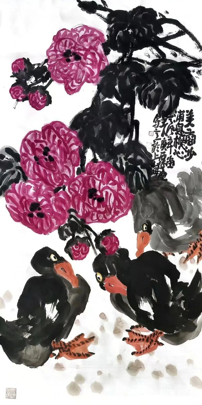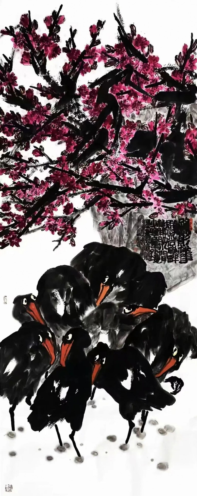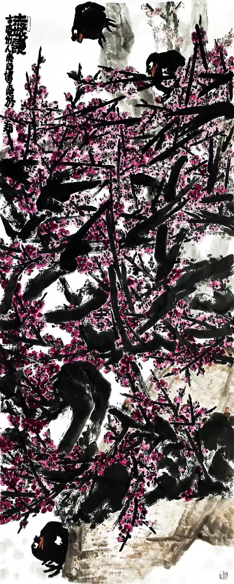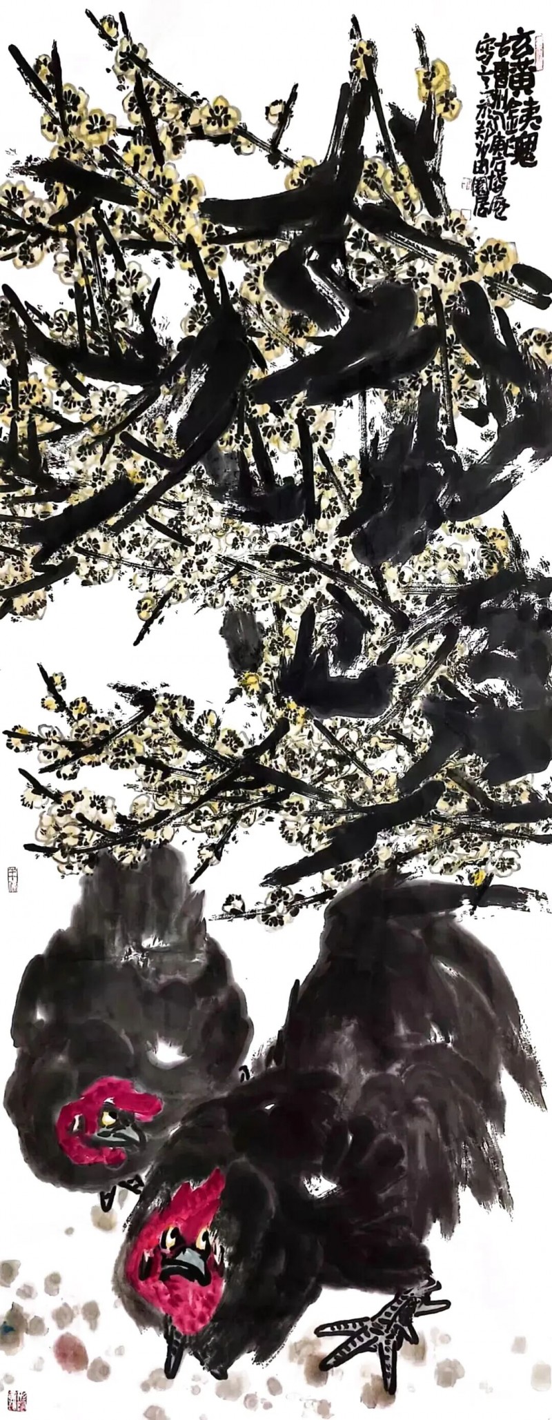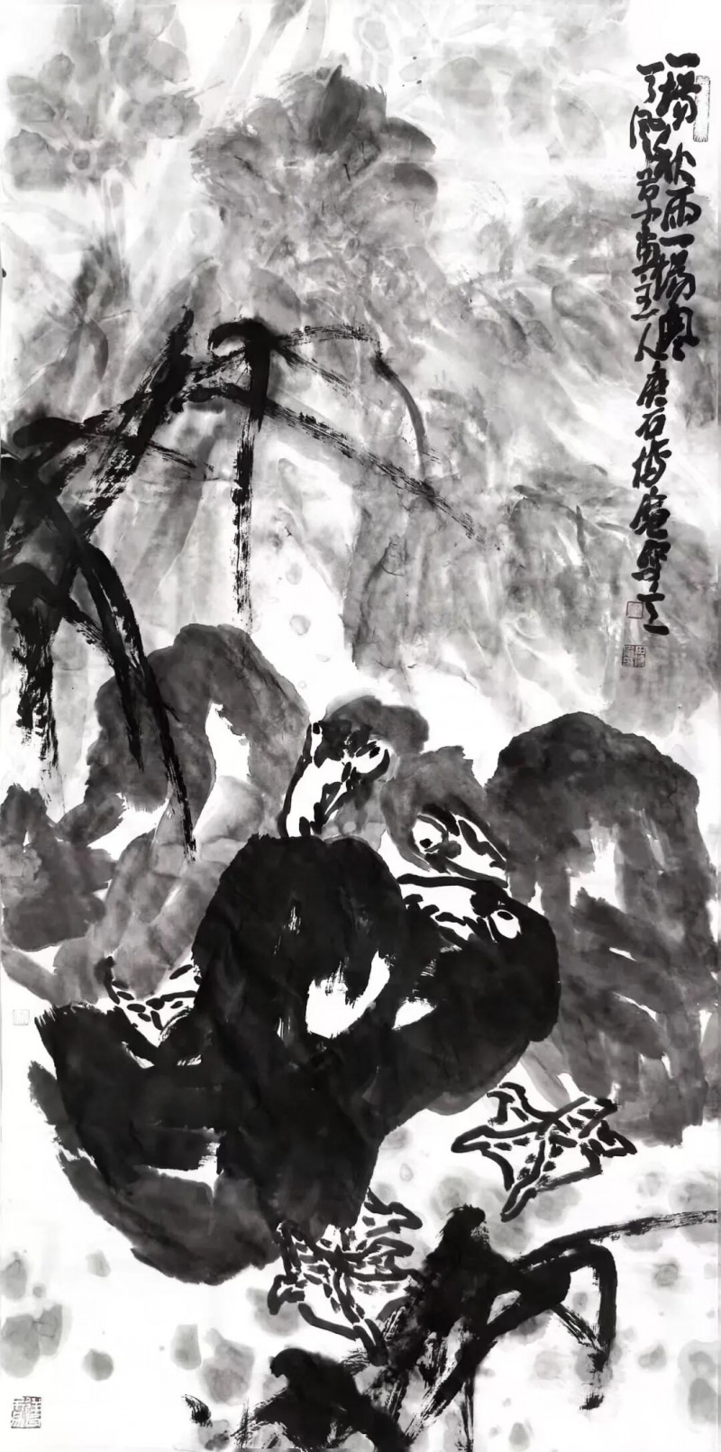 在当代中国大写意花鸟画的多元谱系中,田博庵先生的艺术实践宛若一条沉静而深流的河。他的画作,不以斑斓色彩夺人眼目,而是以笔挟千钧,墨沉气厚的纯粹语言,构筑出一个雄浑而内省的精神世界。这并非一条迎合时趣的捷径,而是一条向传统深处溯洄、并向自我心性诚实质询的艰深路径。他的艺术,为我们理解中国写意精神在当代的深化与演进,提供了一个极具分量的参照。