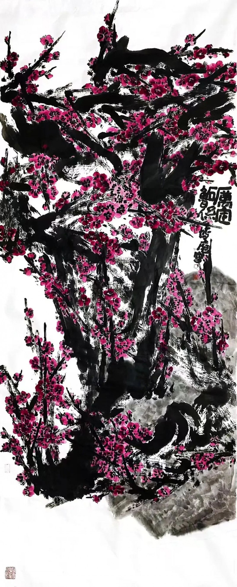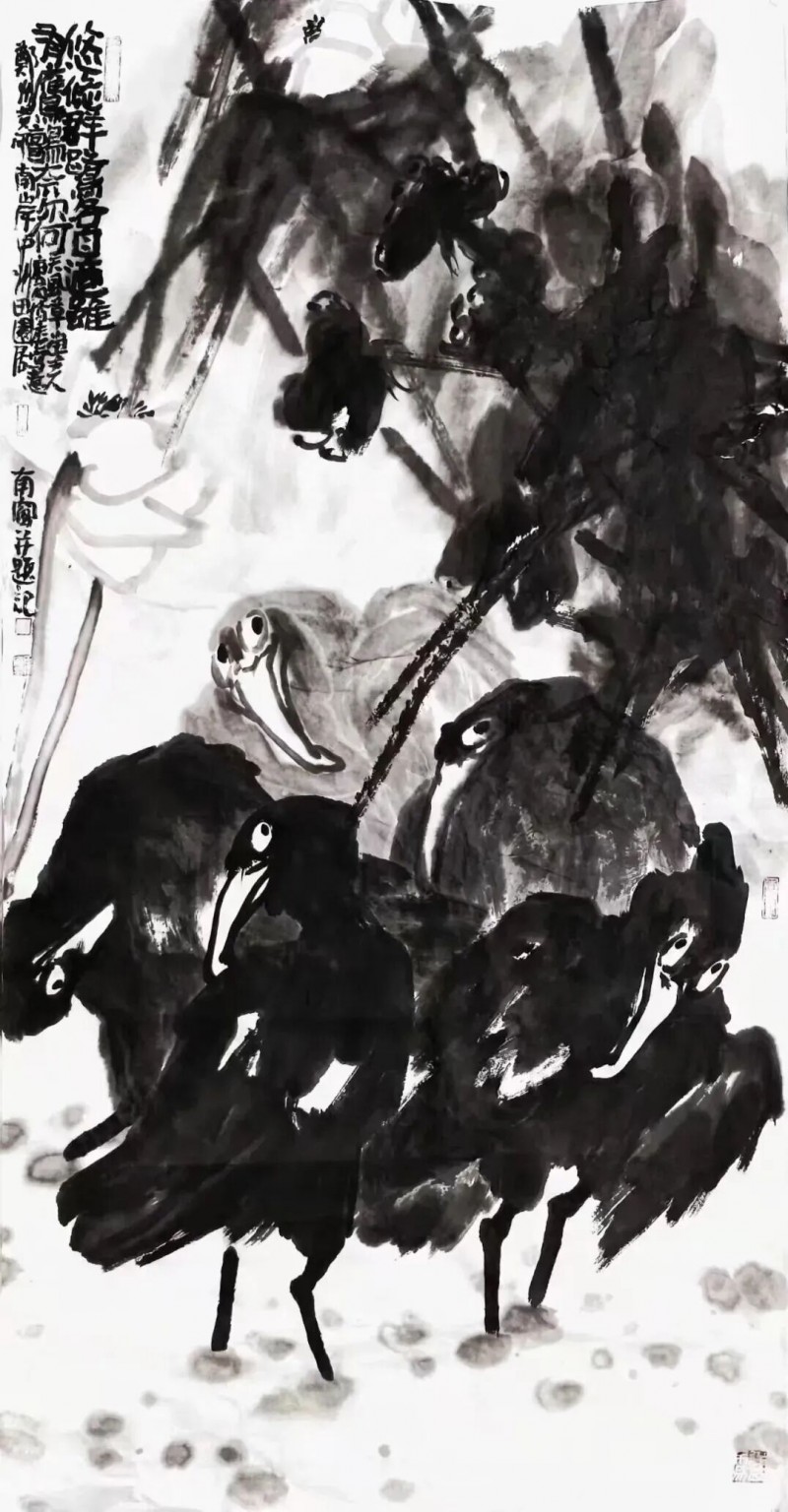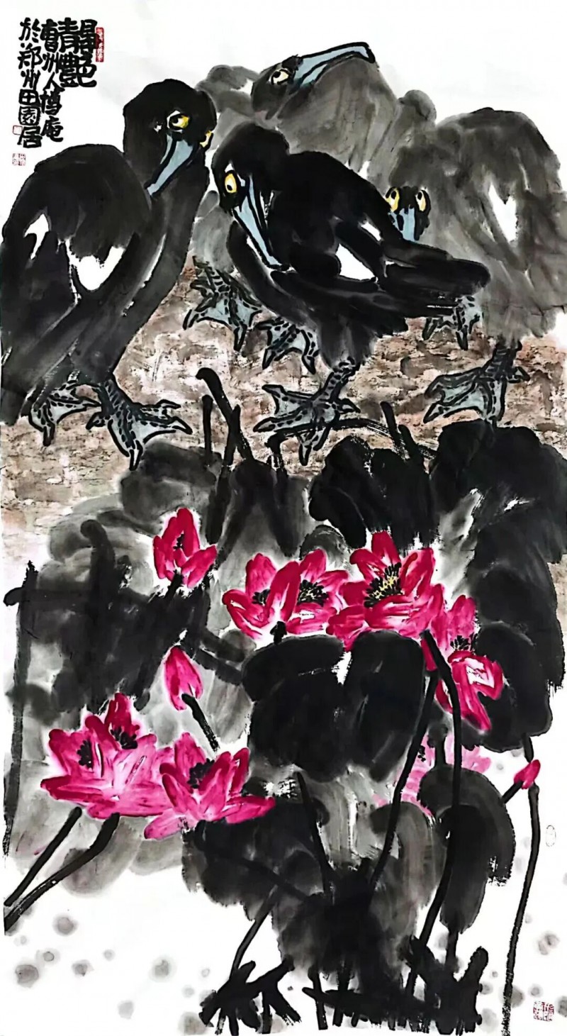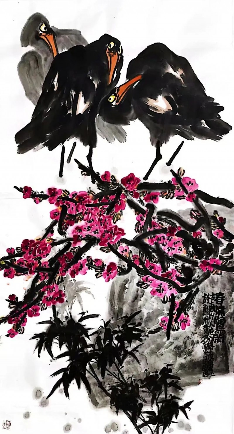 在当代中国大写意花鸟画的多元谱系中,田博庵先生的艺术实践宛若一条沉静而深流的河。他的画作,不以斑斓色彩夺人眼目,而是以笔挟千钧,墨沉气厚的纯粹语言,构筑出一个雄浑而内省的精神世界。这并非一条迎合时趣的捷径,而是一条向传统深处溯洄、并向自我心性诚实质询的艰深路径。他的艺术,为我们理解中国写意精神在当代的深化与演进,提供了一个极具分量的参照。