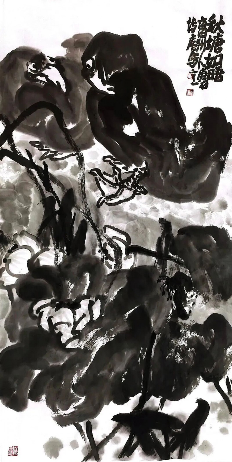 田博庵的艺术追求,直指中国写意画的本质核心——“畅神”。他主张“笔笔是笔,笔笔是墨,笔笔是形,笔笔生发,笔笔有神”,最终归于“画气、画神、画精神”。这意味其笔墨绝非物象的简单附庸,而是修养、心性与生命力的直接载体。他自觉追求“重、拙、大”的美学品格,以一种沉郁顿挫、开阔雄强的意象,主动疏离了纤巧柔媚的流行趣味。这种不入时流的选择,恰恰彰显了其独立不倚的艺术姿态与向内深挖的笃定勇气。
