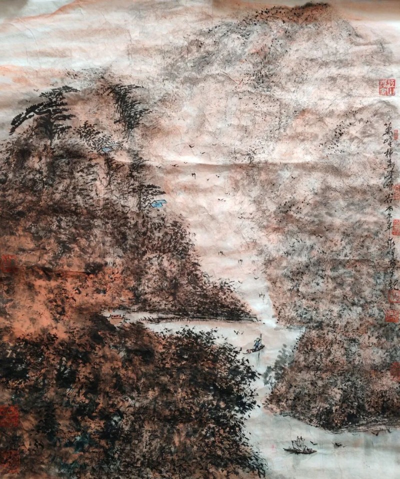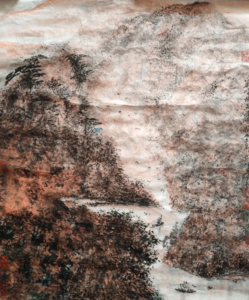 艺术的高度,始于传承的厚度。潘永明自幼便结缘书画,师从海上著名画家胡成荣、胡振郎,打下了扎实的传统功底。他深知,中国画的生命力在于 “师古而不泥古”,数十年来,他以百折不回的毅力,潜心钻研黄宾虹的浑厚华滋、李可染的沉雄博大、傅抱石的磅礴气韵,在反复揣摩中吸收养分,更在实践探索中独辟蹊径,创新出极具辨识度的 “游丝皴” 技法。