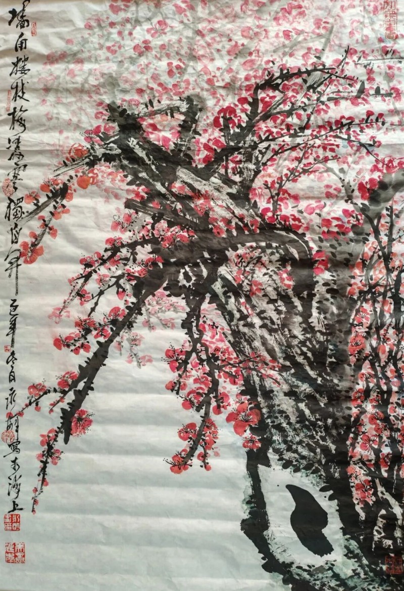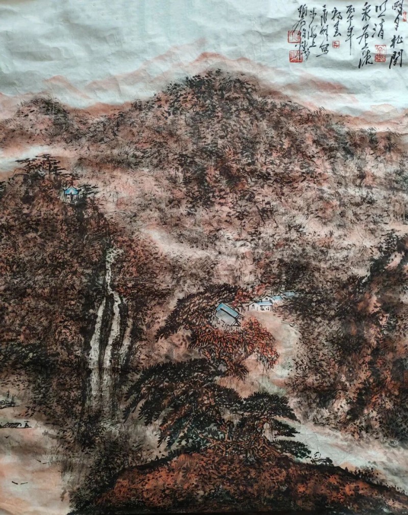 这份执着与才情,赢得了业界泰斗的青睐。国画大师唐云、程十发盛赞其山水画 “很有精神”,谢稚柳更是以 “一代新风” 题词嘉许。作为中国美术家协会会员、上海同济大学民俗文化艺术顾问,潘永明的艺术版图早已超越技法本身 —— 他擅长山水、人物、花鸟,作品兼具传统笔墨的筋骨与现代艺术的气韵,多次在国内外画展中获奖,更被美国、日本、加拿大等多国官方及私人珍藏,巨幅作品《万山红遍、层林尽染》《高山清流图》分别被国外官方人士与宋庆龄纪念馆收藏,被誉为 “活着的傅抱石”。