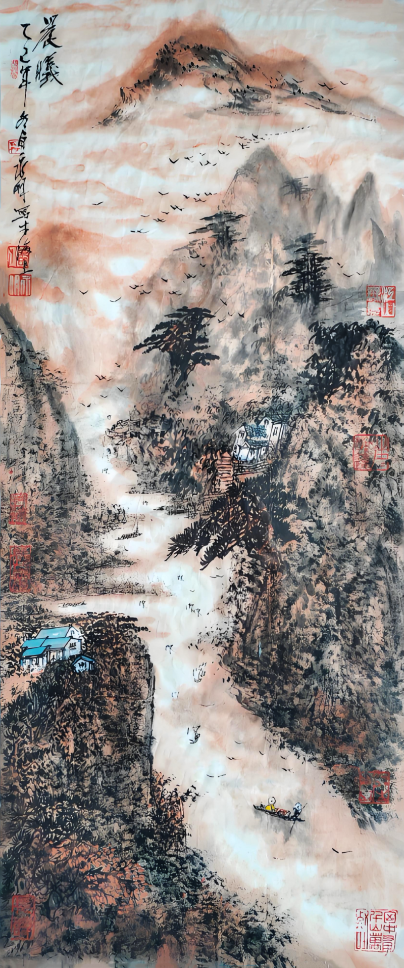 从碧均楼的笔墨耕耘到大别山区的深情守望,潘永明以一生践行着 “德艺双馨” 的真谛。他的画,是传统与创新的交响,是山河与人心的共鸣;他的人,是艺术的坚守者,是民生的关切者。正如他笔下的山川流水,既有雷霆万钧之势,亦有润物无声之暖,在中国画坛的长河中,绽放着 “一代新风” 的持久光彩。