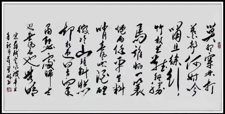 在桂林等地与书法家贾全欣先生交流并合影,在北京与祁荣祥将军书法家交流并合影,经常与张志和、高明柱、方玉杰等著名书法家在一起交流研讨书法。使得草书写的中锋纯任气势,行云流水,心在笔端意在笔先,转折之处毫无拖沓矫揉,前呼后应,笔断意连,布局新颖且用笔爸劲有力,使转如环,奔放流畅,一气呵成,美感耀眼。
