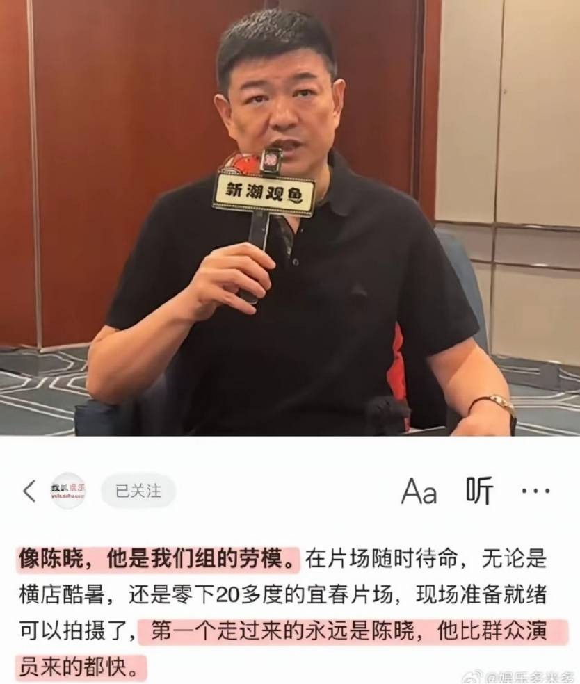看来,陈晓的日常真是满脑子都是戏,人在活动现场,魂可能还留在某个片场里。这种戏外的松弛与他进入工作状态时的全情投入形成了巨大反差。