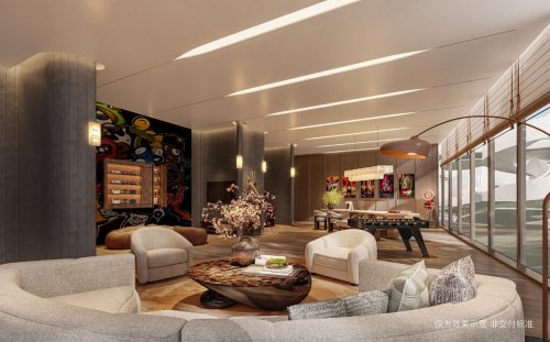 架空层泛会所汇聚颐养、理疗、童趣、阅读、休闲等主题空间,丰盈全龄生活。
