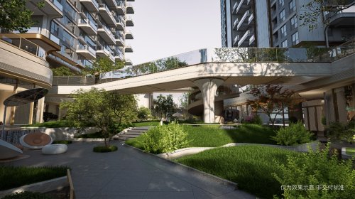 在建筑设计层面,从“生命之树”汲取灵感,以流畅艺术曲线、通透玻璃界面,搭配香槟金、米白、高级灰的雅致配色,雕琢出现代艺术感十足的建筑立面。