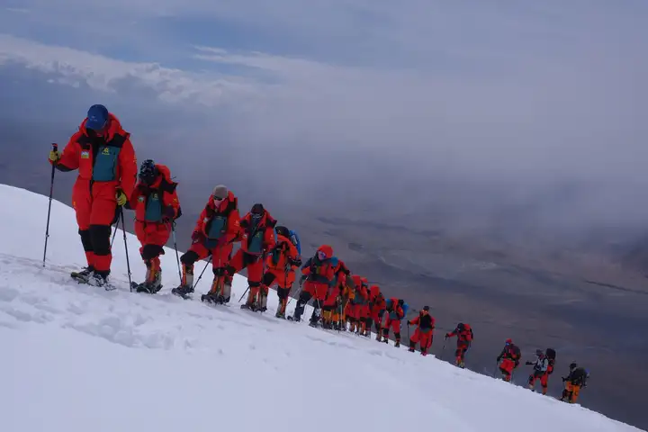 2024年,她第4次带队攀登海拔7546米的慕士塔格峰。当时,全国有16个登山俱乐部、340余名登山队员参与。