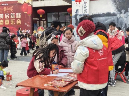 笔墨飘香间年味更浓,书法老师现场挥毫,书写春联与“福”字,供居民领取。剪窗花摊位上,师傅指导大家动手创作,感受传统技艺魅力。此外,做灯笼、爆米花等项目也赢得了小朋友的青睐,家长孩子携手参与,在互动中传承文化,让非遗“活”起来。