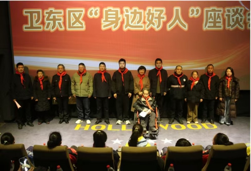 1月29日上午,河南省平顶山市卫东区“身边好人”座谈会在东城国际好莱坞影院温情开讲,来自全区各个行业的9位“身边好人”,分享自己的故事给现场的观众,来自建东小学等学校的学生代表为他们佩戴上红领巾,爱心商户代表为“身边好人”提供了消费优惠政策,营造出全区“学习好人、礼遇好人、争当好人”的社会新风尚。