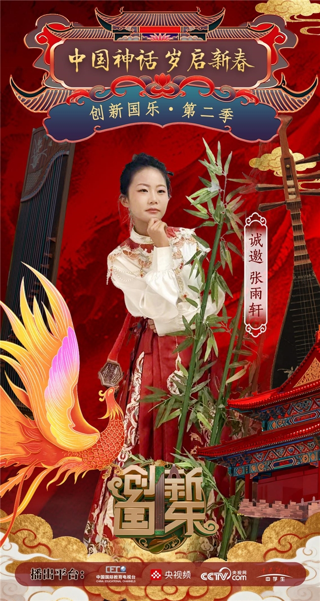为持续推动中华优秀传统文化的创造性转化与创新性发展,打造具有时代气息的国乐精品,创新国乐第二季“中国神话 岁启新春”大型原创国乐盛典2026年2月8日在北京首钢园隆重启幕!在此,我们特别向学员张雨轩发出正式演出邀请,期待她以更加成熟的技艺与表现力,与我们共同演绎华夏神话的壮丽诗篇。