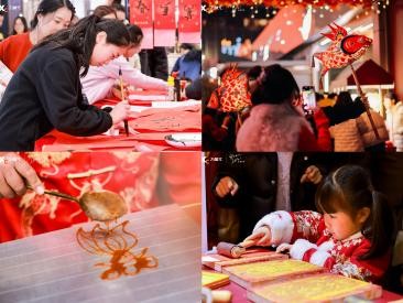以文塑旅、以旅彰文。昆山万象汇将整个商场,精心营造成一个沉浸式的新春文化游园,推动文化和旅游深度融合,从非遗糖画、红包拓印的亲手体验,到与代表性传承人合作的瞻淇鱼灯巡游;从书法家现场挥毫送福,到年货大集——这些活动共同构成了一组可游、可览、可玩、可购的微文旅业态矩阵,将传统的、散点式的庙会民俗体验,系统化、品质化地集成于现代商业空间之中,为市民和游客提供了一站式、高浓度的节日文化消费体验。