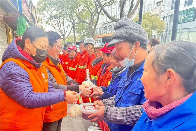 浙江地区机构多点开花开展暖粥公益行动。阳光人寿舟山中支志愿小分队携手滴水公益,为环卫工人送上热粥与节日关怀;阳光人寿台州中支走进卷桥乡村大礼堂,为晨起锻炼的老人和上学的孩子备好暖粥,用点滴善举传递新春祝福;阳光人寿衢州中支联动江山市慈善总会、总工会等多家单位,在社区广场举办“免费送腊八粥暨金融反诈打非”公益活动,以多方协作的形式让暖粥温情与金融守护双向奔赴。