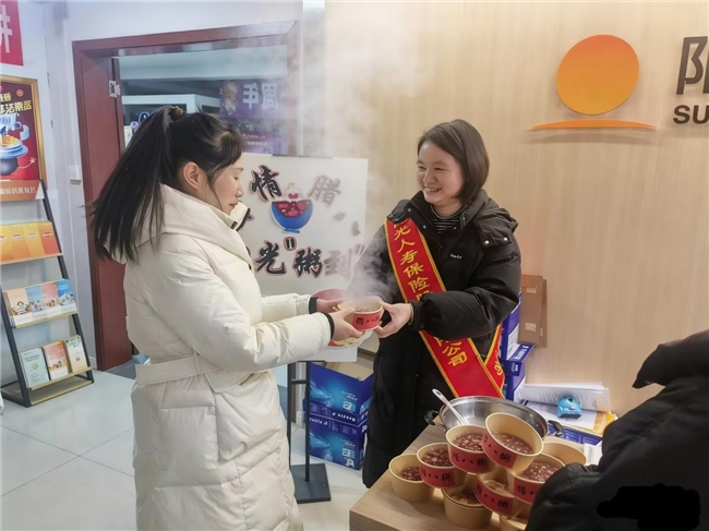 “过了腊八就是年”,一碗热粥承载着冬日里最朴实的温暖。阳光人寿各机构以腊八节为纽带,将公益关怀延伸至不同群体,用实际行动传递企业温度。腊八节当天,阳光人寿上海分公司为每位来访客户送上热腾腾的腊八粥,一位老客户感慨道:“没想到办理业务还能喝到暖心粥,这份心意让人感动。”
