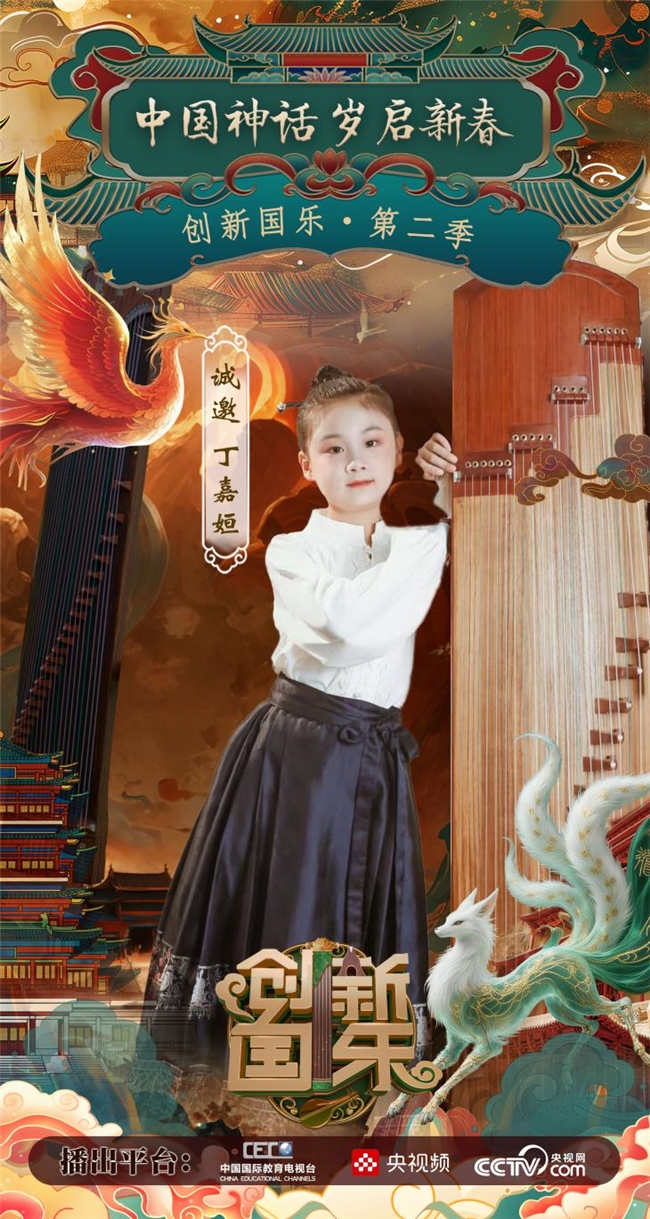 为持续推动中华优秀传统文化的创造性转化与创新性发展,打造具有时代气息的国乐精品,创新国乐第二季“中国神话 岁启新春”大型原创国乐盛典2026年2月8日在北京首钢园隆重启幕!在此,我们特别向学员丁嘉姮发出正式演出邀请,期待她以日臻成熟的技艺与表现力,与我们共同演绎华夏神话的壮丽诗篇。