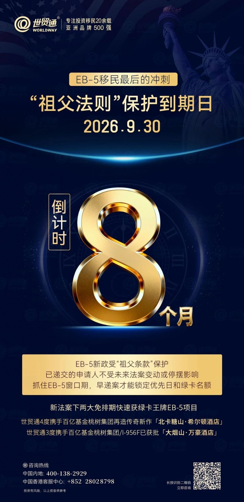 更重要的是,现行EB-5政策仍受“祖父条款”保护:在2026年9月30日之前递交的申请,可锁定当前政策框架,不受未来法律变化影响。
