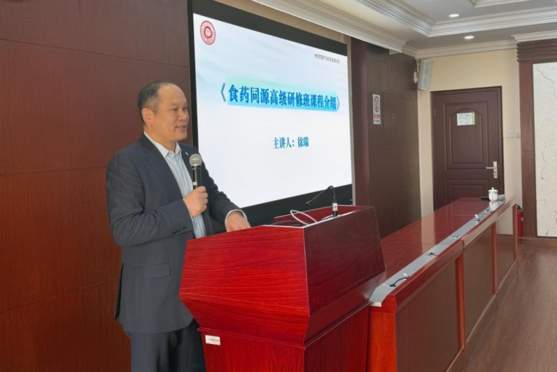 首都智库联合会大健康研究分会会长、食药同源高级研修班发起⼈之⼀徐瑞介绍食药同源高级研修班课程