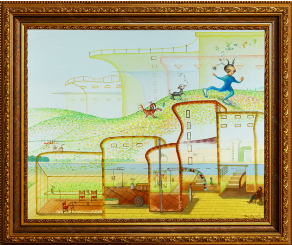 胡新先生生于一个北京的绘画世家,他的祖父胡佩衡是著名湖社画派的创始人之一,享誉北京也享誉大江南北,在中国画的史上有一定的地位,他的父亲胡橐也是近现代有影响的画家,但是,胡新先生没有走他父亲和祖父的传统的绘画道路,他学了油画,到日本留学,跟随日本的油画家佐佐木良三先生学习超现实主义绘画。