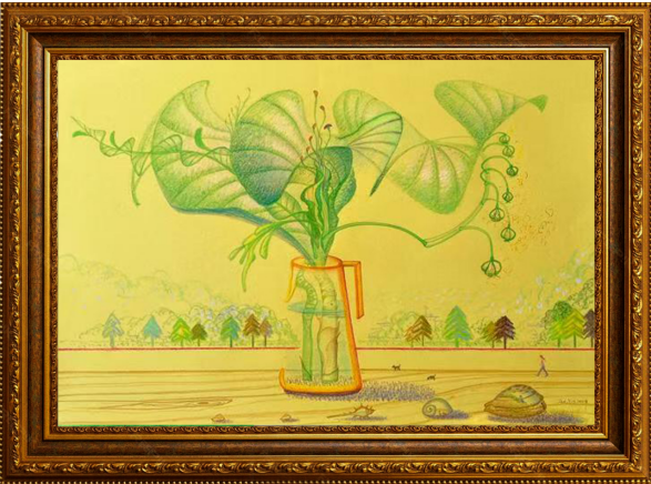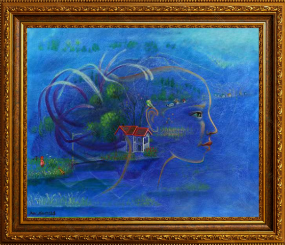 胡新先生的思想有非常的独特性,他喜欢哲学,喜欢一种全新的理念,打破传统,尝试一种新的绘画,他用传统的语言,画他的意识,他的作品更带有一种理想与现实,客观世界与人类意识梦幻般的,像记忆,又想幻觉,又像意识,这种超越了生活本身,追随精神深处的一种遥远的时空感,感觉他的画是一种跨越时空的,一种多维的解构,从他的绘画的解构的形态当中,可以看出来灵魂的漂流和意识的重构,它又是理性的,不是完全一种显性的感观的神经体现,他要在思维的内心深处来找他的记忆,找他自己的意识语言。和他表现的这种意识形态,然后再从这种形式和语言回到意识深处,他自己的心灵家乡。