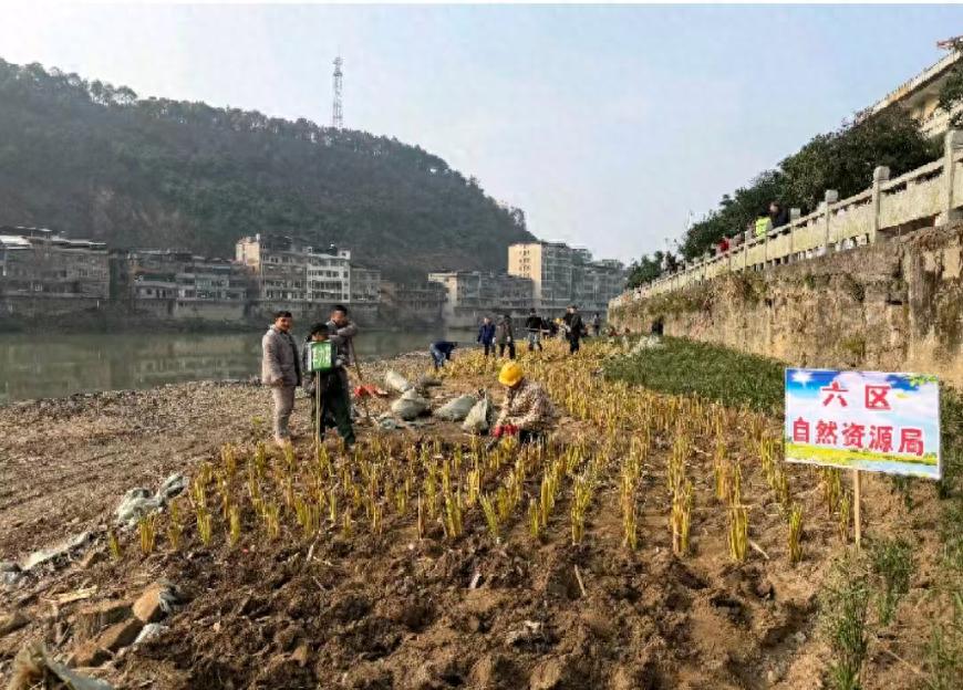 此前,夫夷河沙坪社区段因缺乏统一规划管理,沿岸散养家禽、随意开垦种菜等问题突出,不仅破坏河道景观风貌,更直接影响居民生活品质,生态治理需求迫切。为彻底破解这一难题,县委、县政府锚定生态修复目标,将此次栽植活动纳入夫夷河生态治理工程核心环节,统筹推进、精准发力。