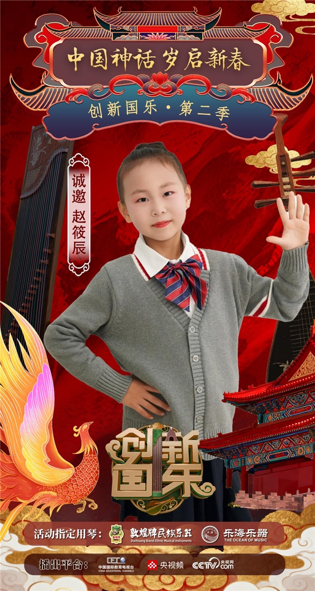 为持续推动中华优秀传统文化的创造性转化与创新性发展,打造具有时代气息的国乐精品,创新国乐第二季“中国神话 岁启新春”大型原创国乐盛典2026年2月8日在北京首钢园隆重启幕!在此,我们特别向学员赵筱辰发出正式演出邀请,期待她以更加成熟的技艺与表现力,与我们共同演绎华夏神话的壮丽诗篇。