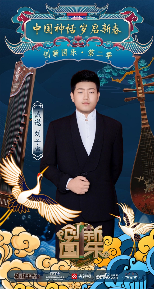 为持续推动中华优秀传统文化的创造性转化与创新性发展,打造具有时代气息的国乐精品,创新国乐第二季“中国神话 岁启新春”大型原创国乐盛典2026年2月8日在北京首钢园隆重启幕!在此,我们特别向学员刘子睿发出正式演出邀请,期待他以更加成熟的技艺与表现力,与我们共同演绎华夏神话的壮丽诗篇。