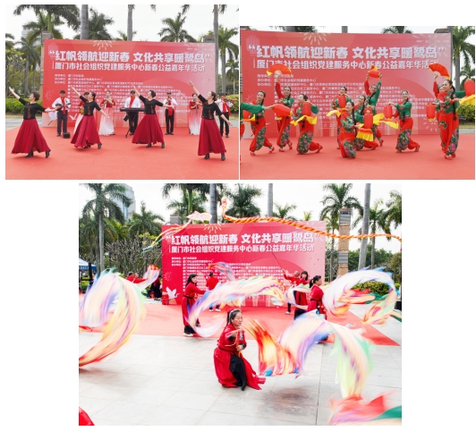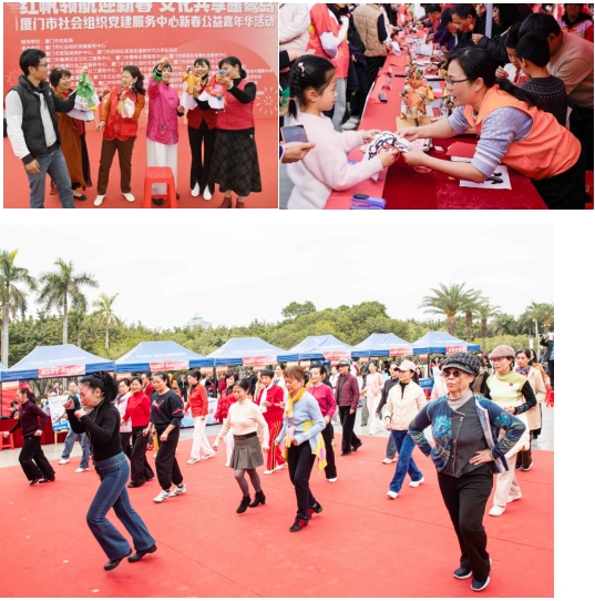 为深入贯彻党的二十大精神,厚植文化自信,以“党建红”引领“文化兴”“公益暖”,1月29日下午,在厦门市民政局的指导下,市社会组织党建服务中心组织开展的“红帆领航迎新春 文化共享暖鹭岛”新春公益嘉年华活动在白鹭洲公园音乐喷泉广场温情启幕,全市数十家社会组织、百余名党员志愿者、社会工作者与市民群众欢聚一堂,共迎新春佳节,为鹭岛增添了浓厚的红色底蕴与民生温度。
