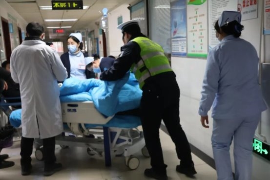 在警车的全程护送下,仅用了约5分钟便顺利抵达城步人民医院急诊部。车辆刚一停稳,民警立即与早已等候在门口的医护人员合力,小心翼翼地将伤者抬上急救担架,一路小跑送进急救室,直到看着伤者被顺利接诊、得到妥善救治,民警才悄悄松了口气,默默离开医院,重新返回自己的工作岗位。