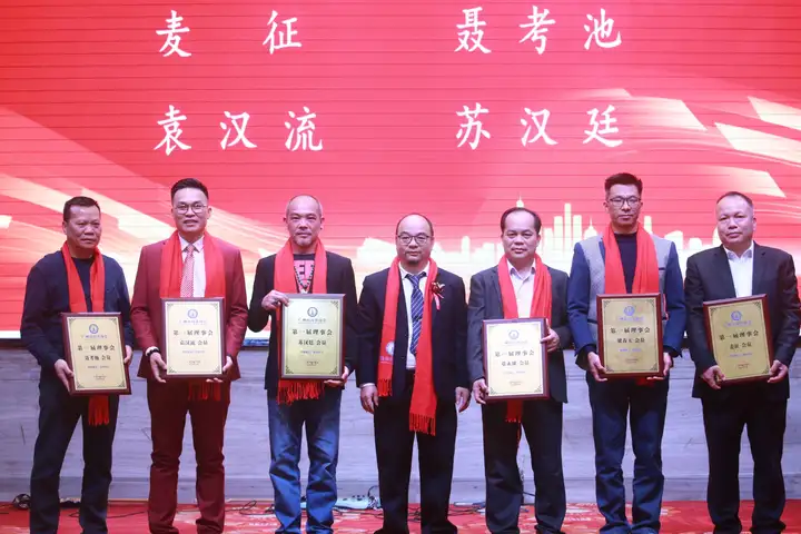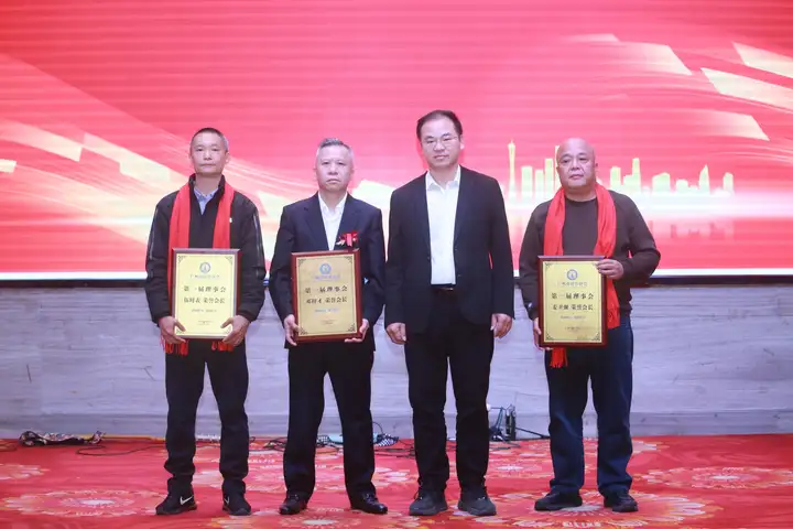 为表彰先进、树立典型,大会举行了隆重的颁牌仪式。封开县人民政府副县长黄锡河、县委统战部相关领导及商会领导班子分别为会长、荣誉会长、执行会长、副会长、理事及会员单位颁发了牌匾。荣誉会长邓梓才、麦卫强分别为优秀个人颁发了“突出贡献奖”和“积极分子”奖,以此激励全体会员同心同德、再创佳绩。
