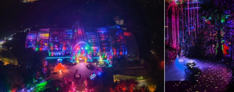 作为西南地区规模最大的温室植物光影秀,内部分为4大区域,每个区域都很独特。其中“星空溶洞”以巧妙的感应式光影设计,打造出极具互动感的浪漫游览场景,形成如水母般浮动、跟随行进步调变化的光影效果。这种即时的、个性化的光影响应,让游客在自然互动中即可收获富有情感温度与节日氛围的影像记录。