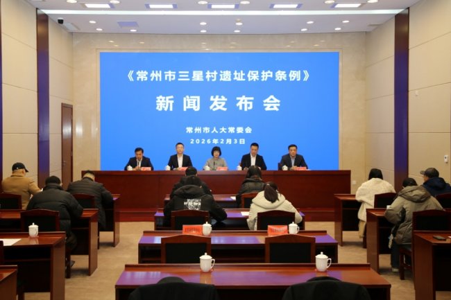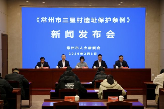 2月3日上午,常州市人大常委会召开《常州市三星村遗址保护条例》新闻发布会。市人大常委会法制工委主任许玲介绍该《条例》的制定过程和特色亮点内容。市人大常委会教科文卫工委、金坛区人民政府、金坛区文广旅局有关负责同志参加发布会并回答记者提问。