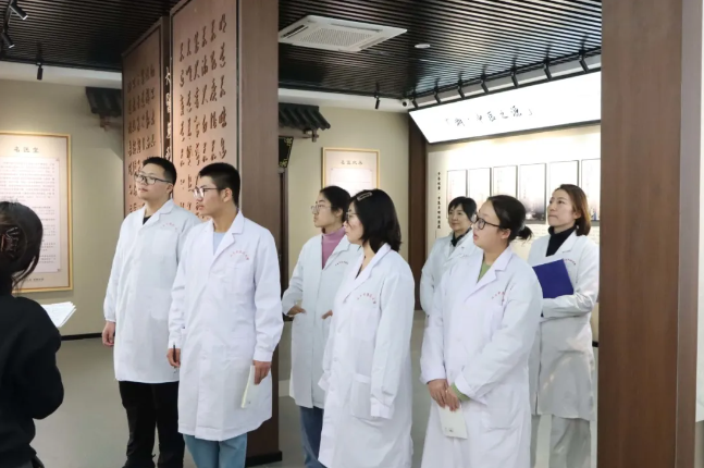 活动尾声,全体人员合影留念,随后前往济南中医风湿病医院“大医无形”中医药博览馆参观。由讲解员介绍馆藏中医药精品、历代医药典籍及本地中医药特色文化,带领见习生们沉浸式感受中医药的传承脉络与独特魅力。