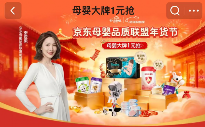 即日起至2月18日,打开京东APP搜索“李亚男严选”即可选购由李亚男全程把关的母婴好物,帮宝适黑金帮纸尿裤、贝因美爱加奶粉等海量品质产品放心购买,更有开年好物1元抢、母婴爆款低价购等惊喜福利。