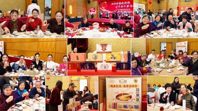 团拜会现场,广东上医精心设置的原汤伴侣系列产品试饮专区,成为活动现场最具人气的亮点之一。这不仅是原汤伴侣系列产品的展示,更是一场沉浸式的文化体验,让到场长者在节日的欢聚中,亲身感受岭南汤文化与现代养生智慧交融的独特魅力。